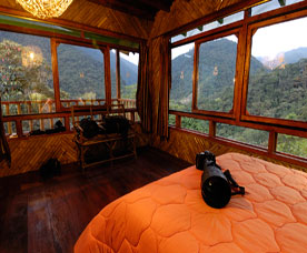 Our private nature reserves offer up to 1,600 possible bird species, 100 Hummingbird species, 25 running waterfalls, ponds, lagoons, rivers, wild orchids in natural habitat, medicinal plants, seasonal butterflies, mammals & a wide variety of diverse flora & fauna. Our all-inclusive Ecuador Tours include airport transfers or pick up from downtown Quito, delicious meals, lodging, specialized English speaking native guides and private transportation throughout the reserves. We bird our way from reserve to reserve eliminating unnecessary driving. Our 6 Eco-Lodges in Ecuador are rustic and environmentally friendly and offer quality service with comfortable well-appointed rooms furnished in typical décor.  Optional upgrades include rooms with balconies/patios and best views.  The opportunities are endless, viewing wildlife at our 65-foot high observation tower and decks overlooking the Amazonian canopy, seeing rare and exotic birds, or photography from our hides, swimming at the cascading waterfalls / Amazonian rivers with a picnic lunch, or selecting one of our Ecuadorian cultural tours.  We offer something for everyone!
