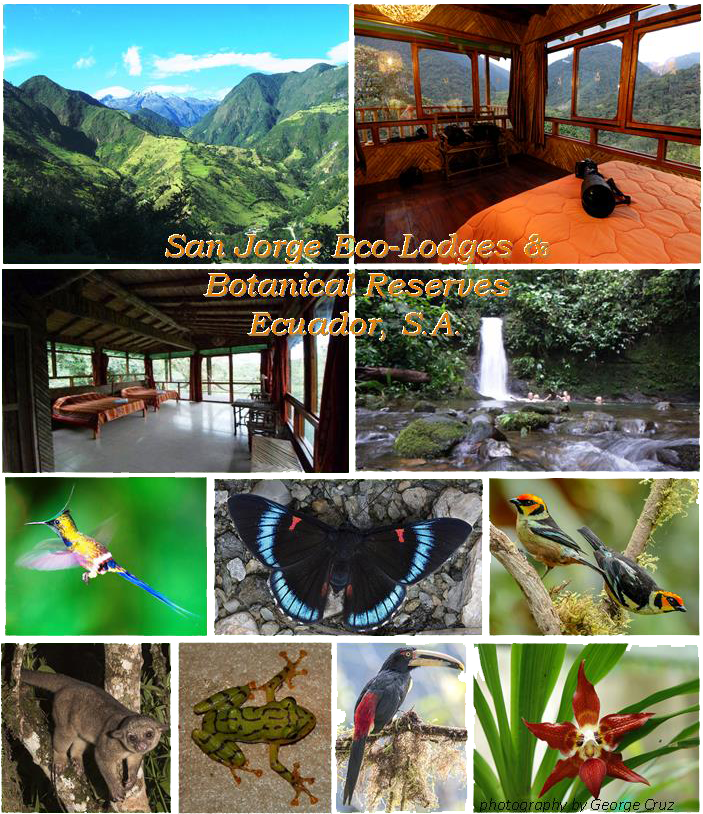 ~ VISIT both the East & West Andes Slopes - 6 SAN JORGE LODGES & PRIVATE NATURE RESERVES IN THE ANDES HIGHLANDS, CLOUD FORESTS & AMAZONIAN TROPICAL RAINFOREST~